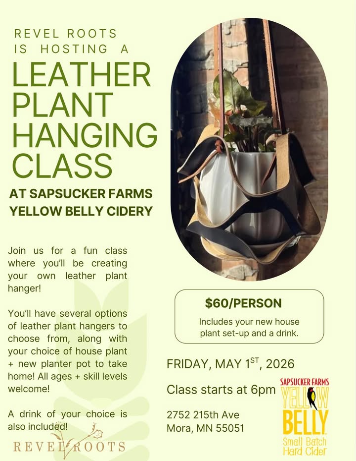 Friday May 1st 6pm Create your own Leather Plant Hanger Class $60