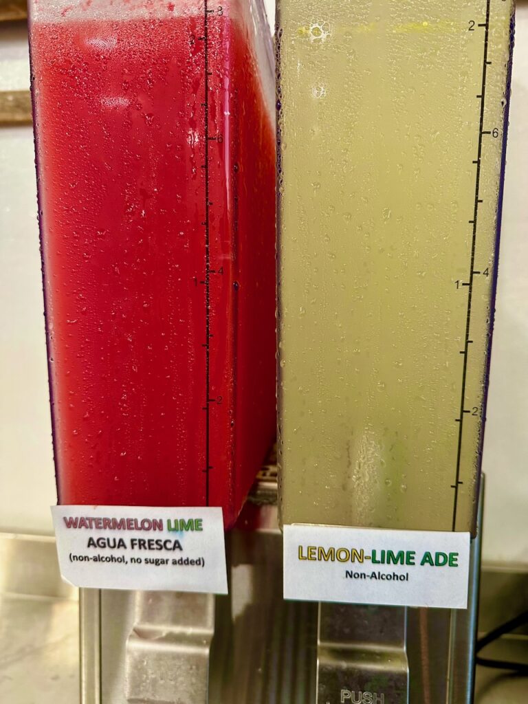 This is a Mexican-style non-alcohol fruit juice beverage with fresh fruit juice and herbs. Selections will change throughout the season, such as a watermelon-lime, pineapple mint, honey dew melon or whatever fruit is in season. A refreshing choice for those who are looking for low sugar beverages.