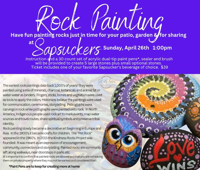 SUNDAY 4/26/26 1pm ROCK PAINTING CLASS $39